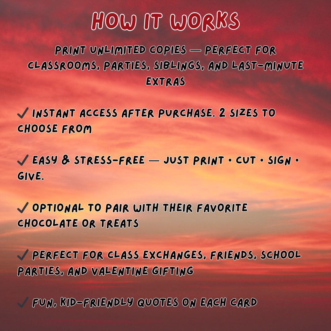 Bring all the retro vibes to Valentine’s Day with these 80s-inspired, spooky-cute Valentine cards, perfect for tweens and teens who love bold colors, nostalgic energy, and a little mystery. Designed with a fun throwback aesthetic, these cards are great for friends, classmates, and non-traditional Valentines.