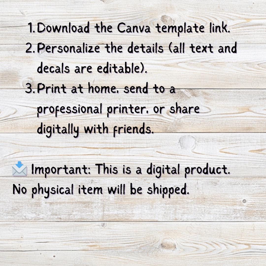 - Invitations designed for 5" x 7" printing or digital sharing.